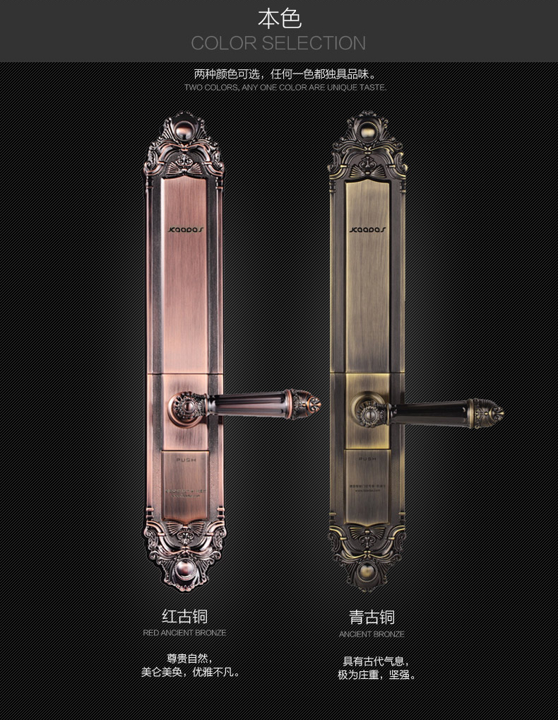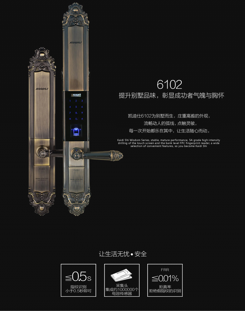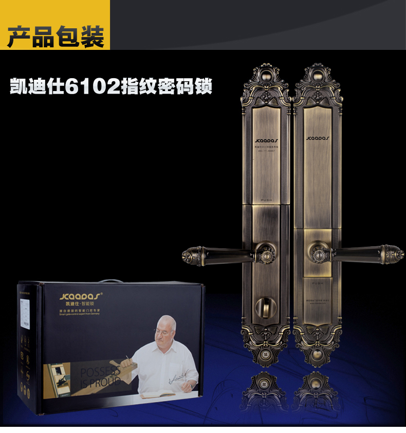 德国凯迪仕高端别墅指纹锁 智能锁 密码锁 防盗门锁 别墅门锁6102 全国免费上门安装 青古铜