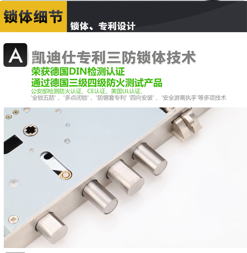 • 三防专利锁体:采用防撬、防冲撞国标锁体;