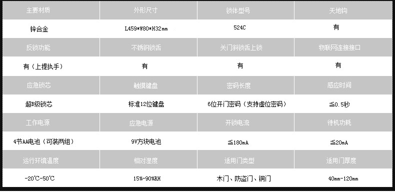 • 安全功能:反锁功能/防窥视功能/键盘锁死功能/国标防盗锁体
