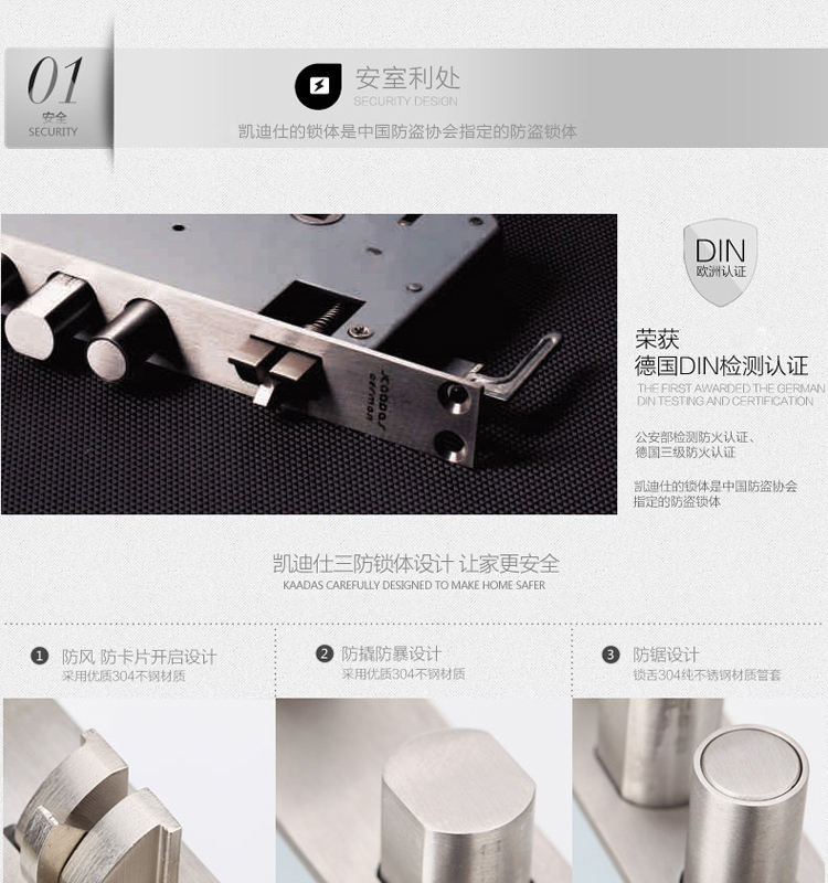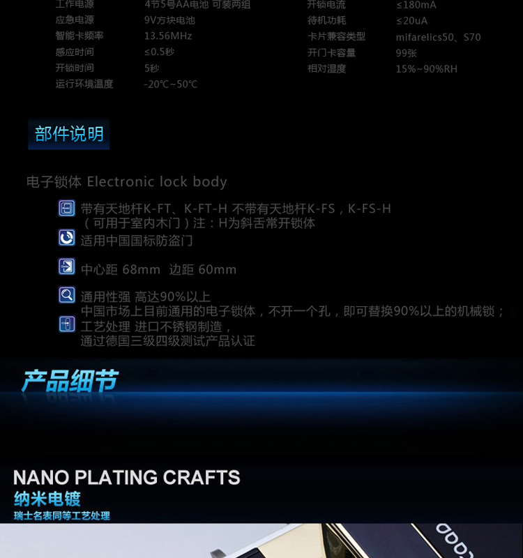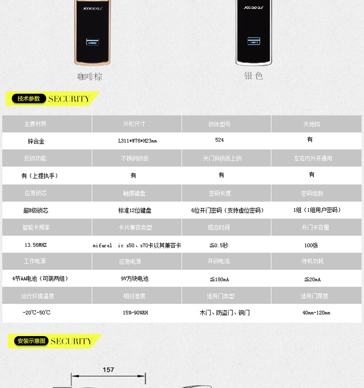 • 安全功能:反锁功能/防窥视功能/键盘锁死功能/国标防盗锁体