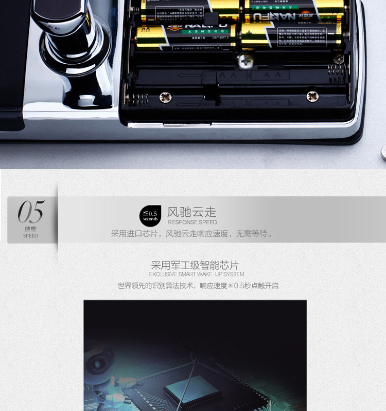 • 开合电机:锁体内开合电机采用采用金属齿轮;