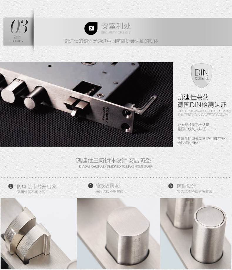 • 安全功能:反锁功能/防窥视功能/键盘锁死功能/国标防盗锁体